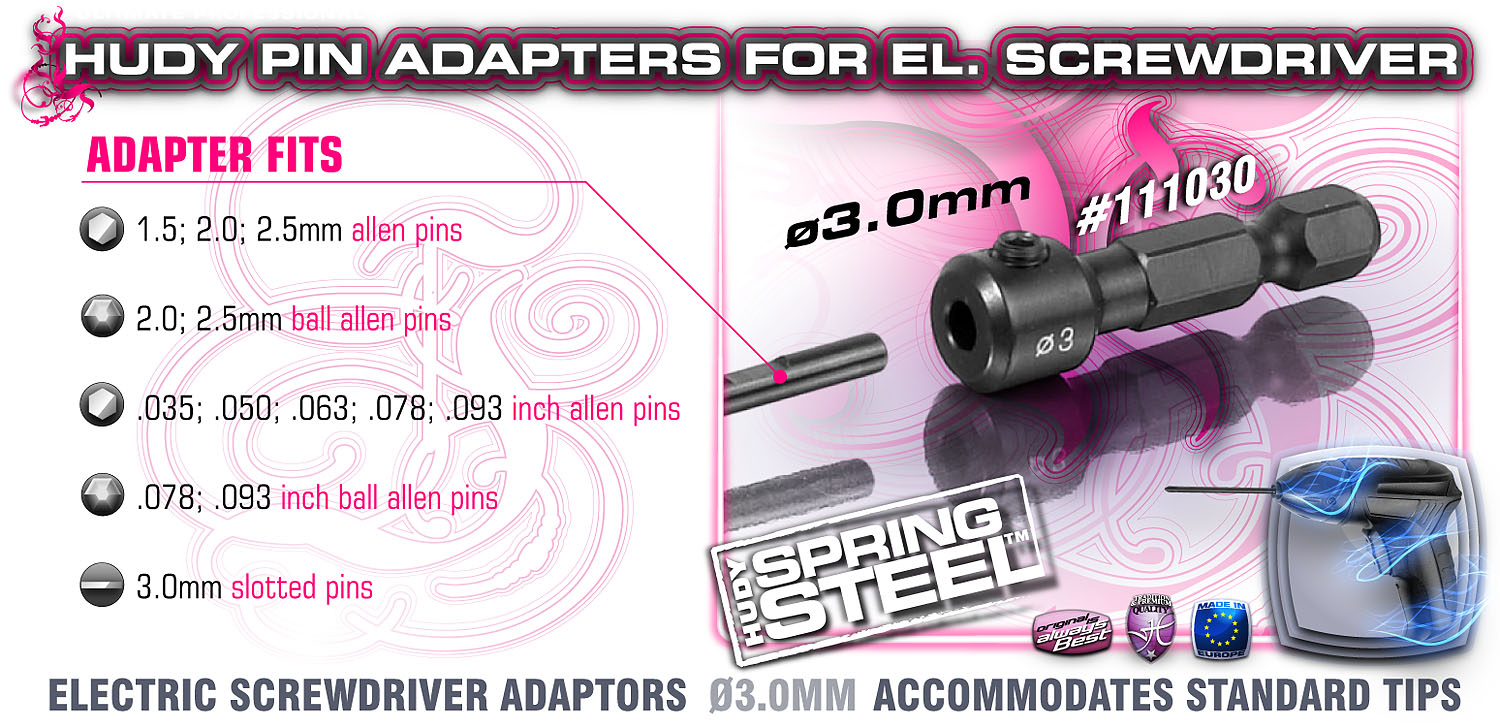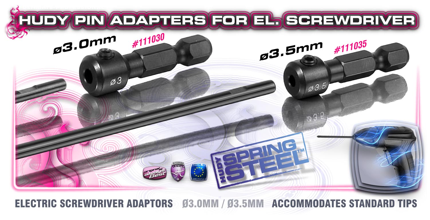 ø3.5mm adaptors for electric screwdrivers allow for use of standard tips from regular tools. Made from world-renowned HUDY Spring Steel™. HUDY offers a large range of tool tips that can now be used with pin adapter for electric screwdrivers.