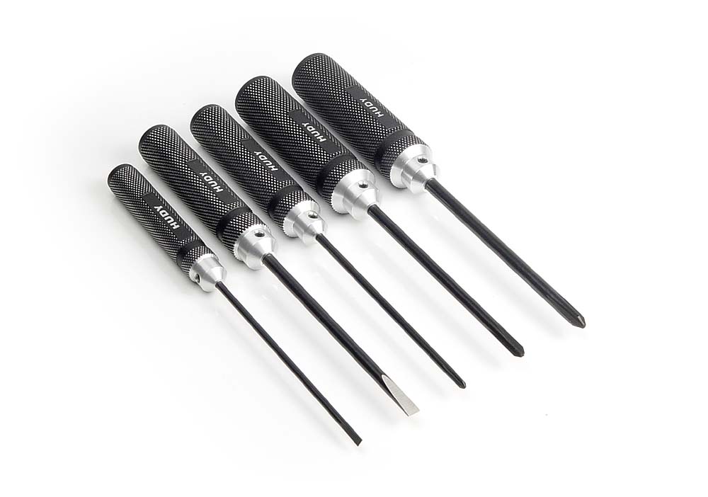 Set of Hudy Professional screwdrivers, with two popular slotted screwdrivers and three popular Phillips screwdrivers. Ultra-lightweight, ultra-durable screwdrivers feature superb fit and finish. Hardened tips, made from world-renown Hudy Spring Steel, are precision designed for excellent fit, long life, and unbelievable torque.