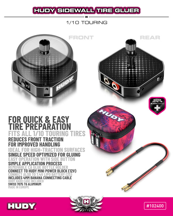 Der HUDY 1/10 Touring Sidewall Tire Gluer ist ein präzisionsgefertigtes Werkzeug, das für das mühelose und genaue Verkleben von Reifenflanken von Tourenwagenreifen entwickelt wurde.