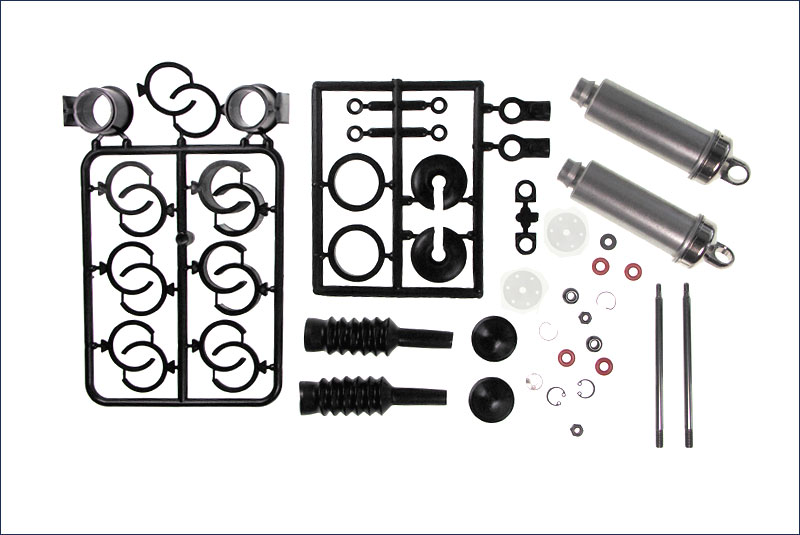 Das Set enthält zwei komplette Stoßdämpfer mit sämtlichen Kleinteilen und den Dämpferschutzkappen. Folgende BigBore Shocks sind derzeit lieferbar: