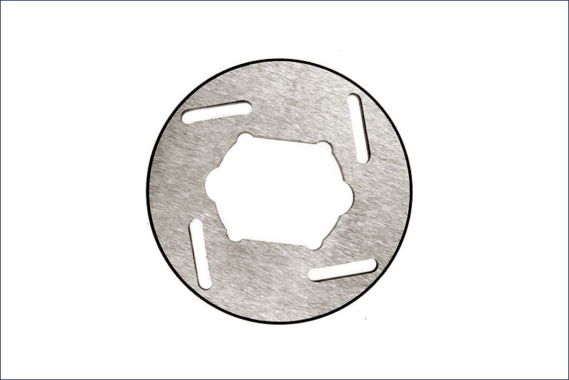 Geschlitzte Tuning-Bremsscheibe aus Edelstahl, für hohe Beanspruchungen. Durch die Schlitzung der Scheibe, kann sich Bremsabrieb in den Kanälen sammeln. Der Abrieb wirkt somit nicht störend zwischen der Scheibe und dem Belag.
