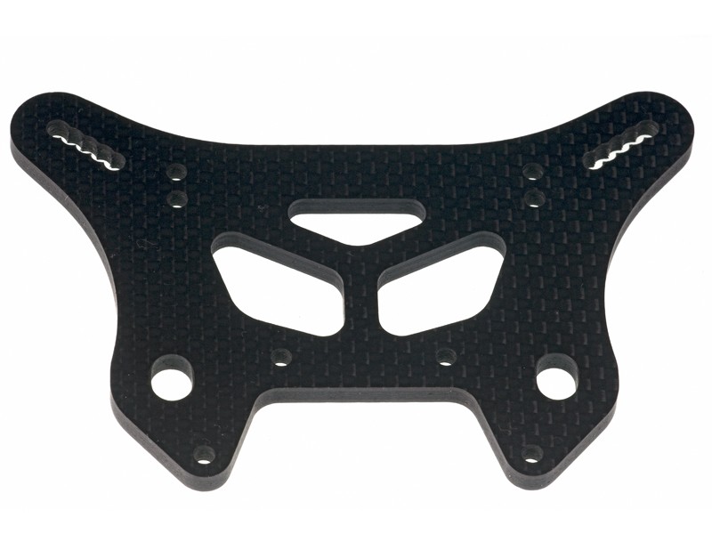 Original Mugen Seiki Dämpfer Befestigungsplatte aus Carbon passend ander Vorderachse beim MBX6T Wettbewerbstruggy im Maßstab 1:8. Im Lieferumfang sind 1 vordere Dämpfer Befestigungsplatte enthalten.