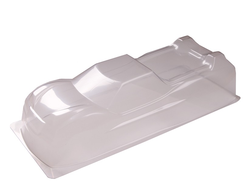 Original Mugen Seiki Karosserie mit einer 1,25mm Wandstärke passend für den MBX6T Wettbewerbstruggy im Maßstab 1:8. Eine fein detailierte 1:8 Truggy Variante aus transparentem Lexan bietet den Chassiskomponenten den notwendigen Schutz. Im Lieferumfang sind 1 transparente Karosserie inklusive Maskierfolie für das Abkleben der Fenster während der Lackierarbeiten enthalten.