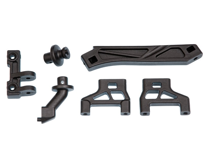 Original Mugen Seiki Versteifungsstreben Set vorn und verschieden Plastikkleinteile passend am MBX6 sowie MBX6T Wettbewerbsfahrzeug im Maßstab 1:8. Im Lieferumfang sind jeweils 1 Versteifungstrebe vorn und Strebenhalterung hinten, 2 Karosseriehalterungen sowie Servobefestigungen enthalten.