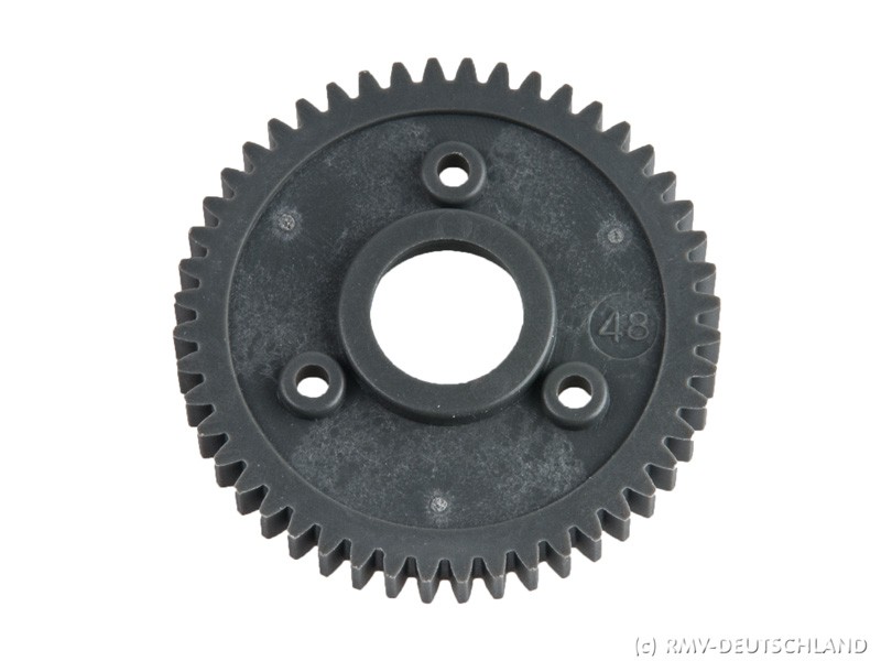 Original Mugen Seiki Zahnrad 48 Zähne 2.Gang passend am MTX-5 Wettbewerbsglattbahner im Maßstab 1:10. Überarbeitet wurden alle Getriebezahnräder für den Mugen MTX-5. Die bei verschiedenen Zahnrädern nicht optimal ausgeführten Profilverschiebungen wurden korrigiert, wodurch sich nun in allen möglichen Untersetzungskonstellationen ein optimaler Leichtlauf des Getriebes bei geringsten Antriebsverlusten und deutlich minimierter Geräuschentwicklung ergibt. Die neuen Zahnräder sind darüber hinaus aus einem deutlich haltbareren und weniger defektanfälligen grauen Kunststoffmaterial hergestellt, wodurch die Lebensdauer der Getriebezahnräder spürbar verbessert wurde. Im Lieferumfang sind 1 Zahnrad 48 Zähne 2.Gang für den Mugen Seiki 1:10 GP 4WD MTX-5 enthalten.