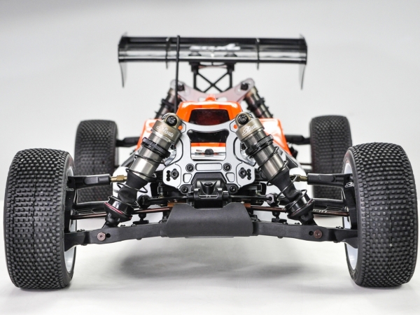 The main chassis has served us well, the 4mm 7075-T6 aluminum chassis continues to provide a solid foundation for one of the best E buggies ever produced. Being that the chassis is flat, and gives us the ability to run a block or saddle layout, the chassis is at no shortage of strength and performance. Having weight of this chassis the lowest possible, it really helps to prevent traction rolls, as well as helps give better control while in flight. Aiding in lowering the CG, it also helps the polar moment and helps the car track straight even in the roughest terrain.