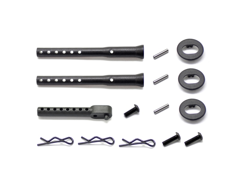 Full set of adjustable front body posts including the the third centre mount. Comes complete with mounting screws and body clips.