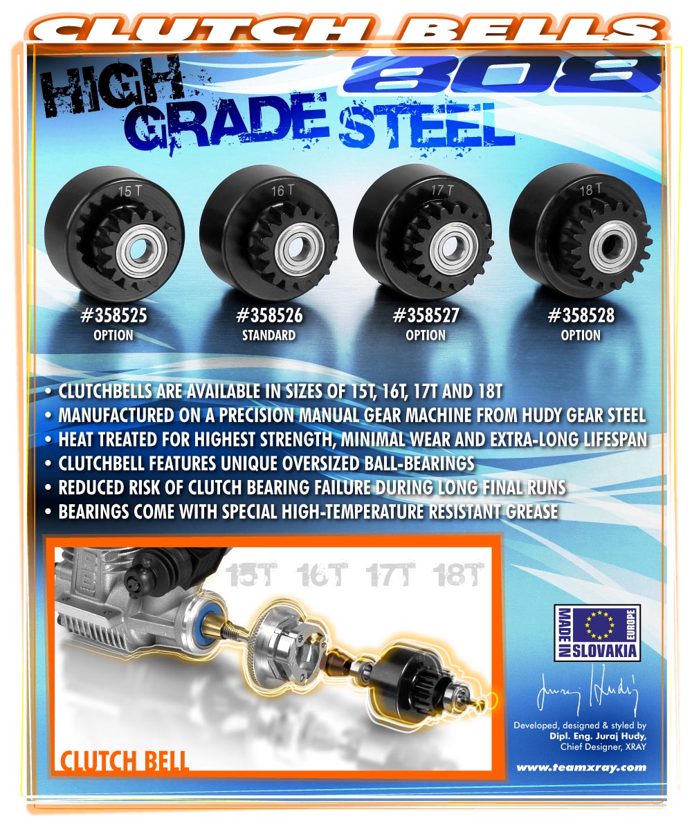 Clutchbells are available in sizes of 15T, 16T, 17T and 18T.