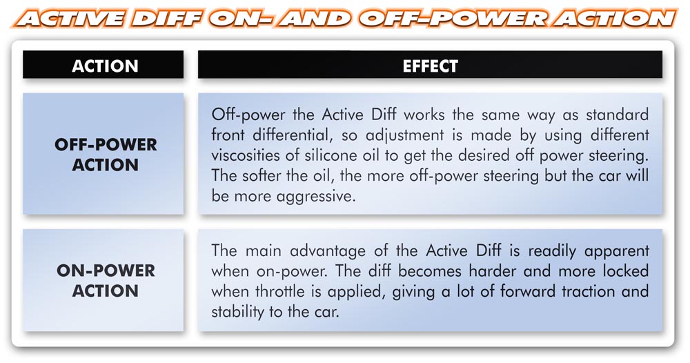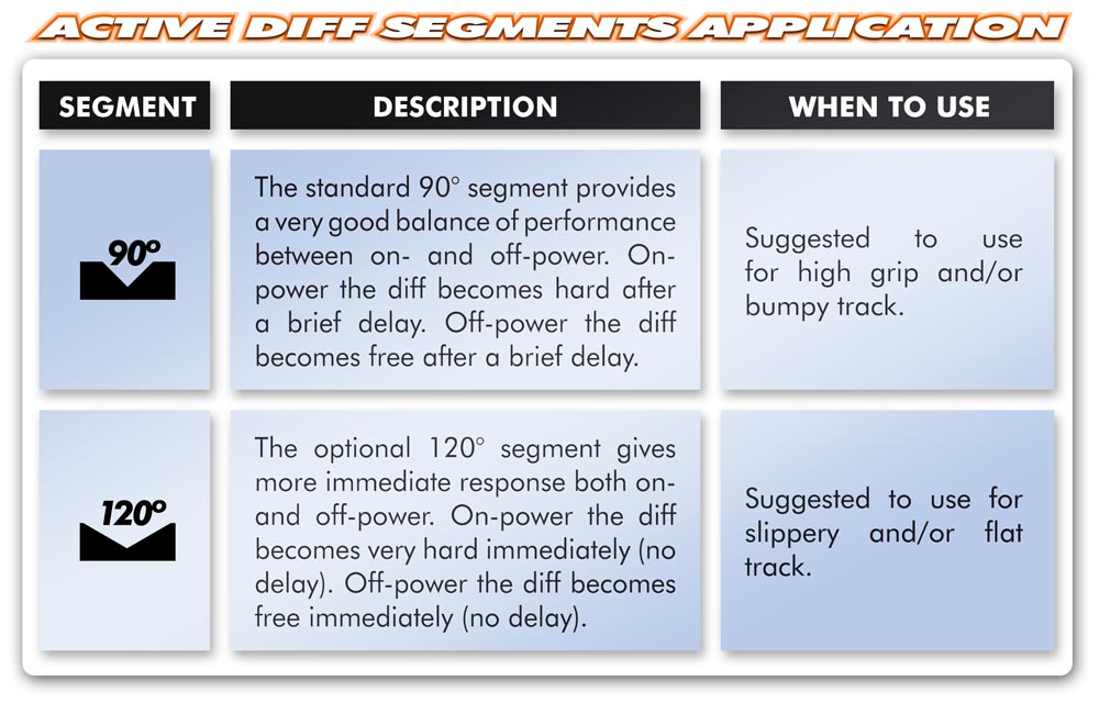 The unique XRAY Center Active Differential™ is a high-performance, adjustable gear differential that vastly improves the buggy’s speed and handling characteristics. The special design of the internal components, using different angled segments, allows the diff gears to engage on-power to increase forward traction and stability to make the buggy faster and easier to drive.