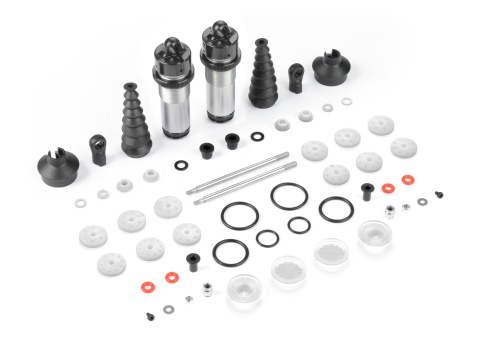 The XB8 shocks feature multi-adjustable 3-in-1 shock caps with 4 bleed holes with 3 different seal choices – ribbed membrane, cell membrane, or O-ring. The shorter shocks feature 3 different assembly alternatives – emulsion / rebound / zero rebound, with each one suitable for different track conditions.